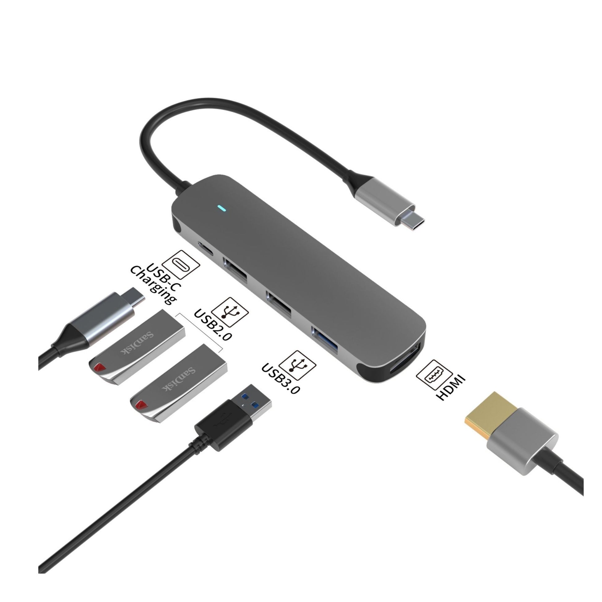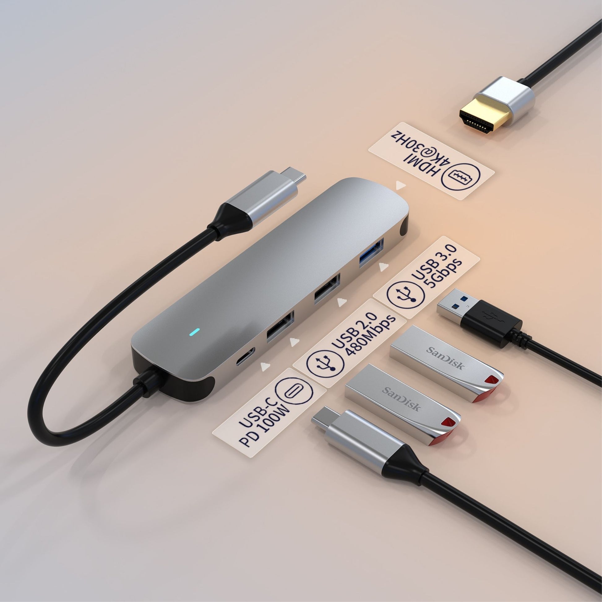 - The HH-Tech 5-in-1 USB C Hub, the perfect companion for your MacBook and all other USB C devices. This versatile hub offers lighting fast data transfer, display expansion, and convenient charging.